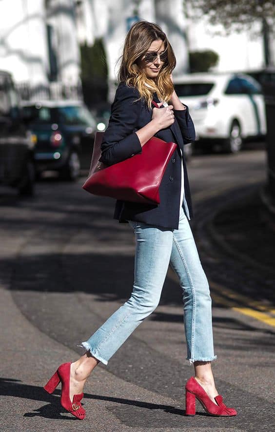 Quando o assunto é calçado, o preto é uma escolha óbvia, mas vale a pena investir no sapato vermelho, ele proporciona um toque de cor capaz de iluminar qualquer look.