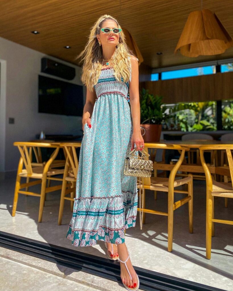 O vestido soltinho é peça-chave no verão. Prefira tecidos como algodão ou linho e combine com sandálias rasteiras ou papetes. Um look único, fresco e sem esforço.