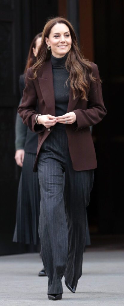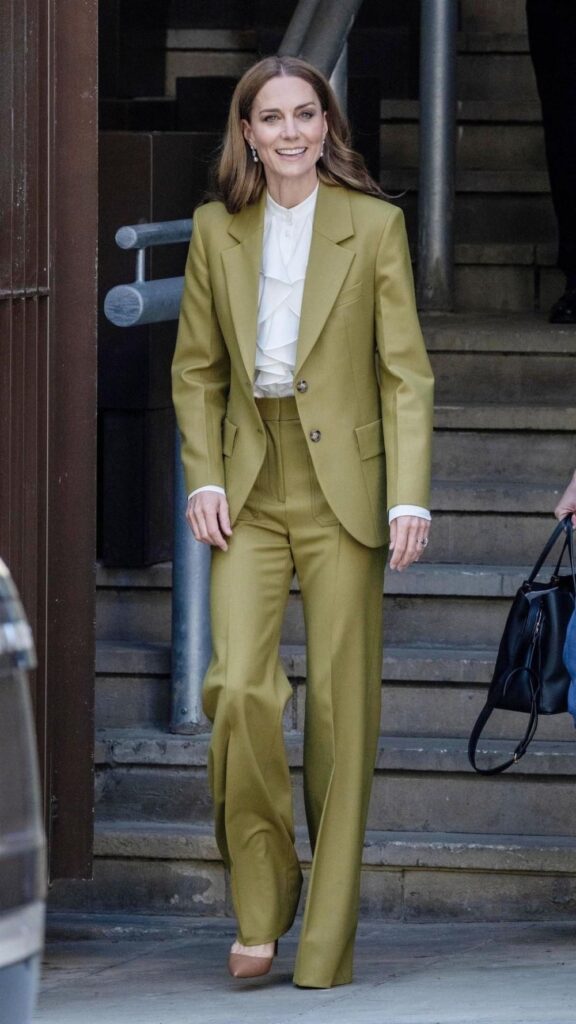 Essa mudança interna reflete-se com clareza em sua imagem pública. O estilo de Catherine, pautado por anos pela “diplomacia do guarda-roupa”, evoluiu para o que o mercado de luxo classifica como Quiet Confidence (Confiança Silenciosa). Além disso, a Princesa consolidou o uso de ternos de alfaiataria impecáveis — assinados por nomes como Alexander McQueen — comunicando autoridade, modernidade e um pragmatismo executivo.