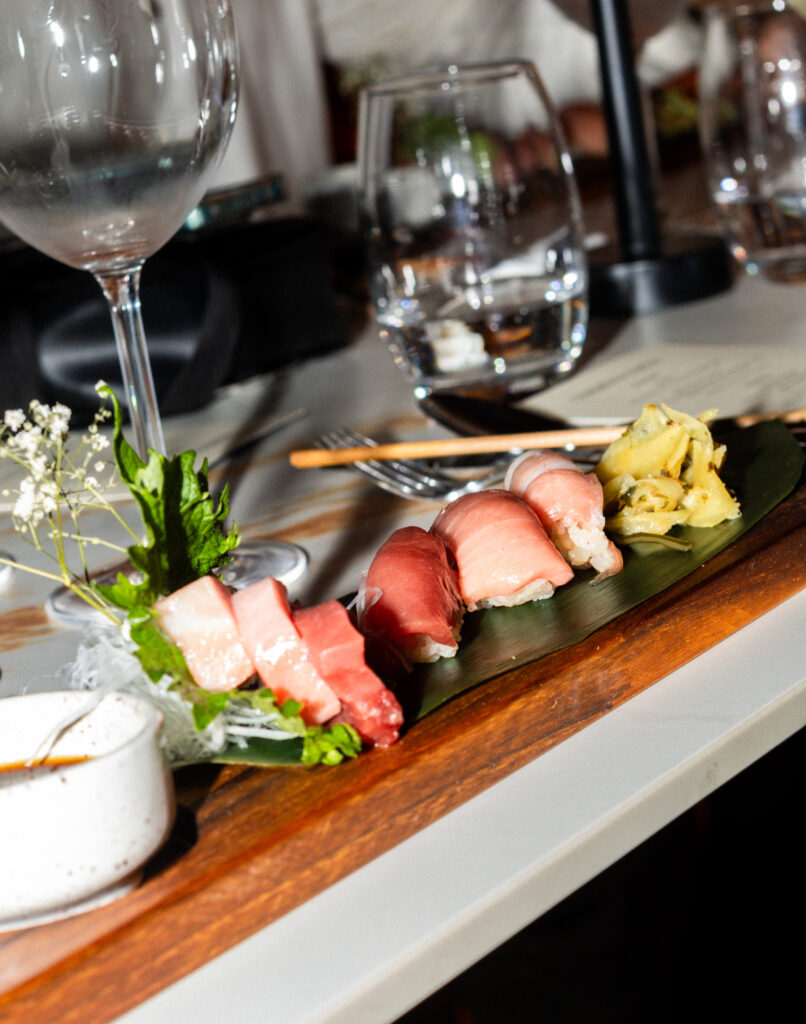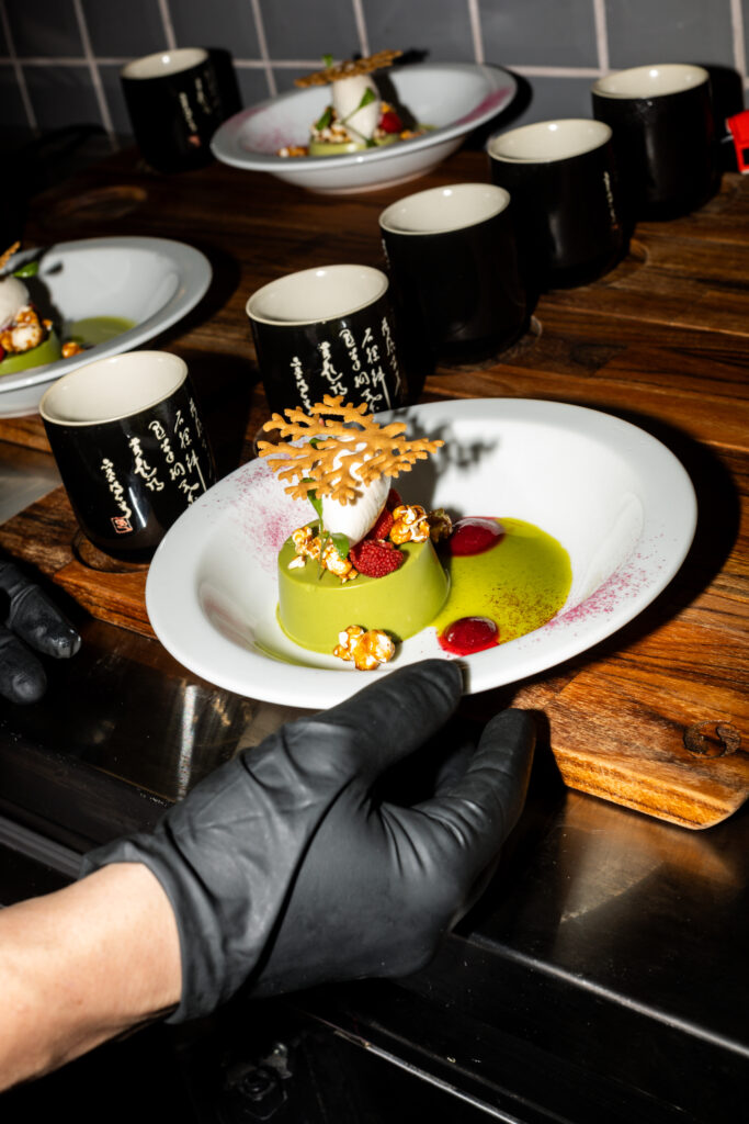 Após o ritual, os convidados participaram de um jantar em oito etapas, com snacks, sushis, sashimis, prato quente e sobremesa assinada pela nova confeiteira do grupo, Amanda Grezzana. O menu foi harmonizado com vinhos da Serra Gaúcha e sakês japoneses.