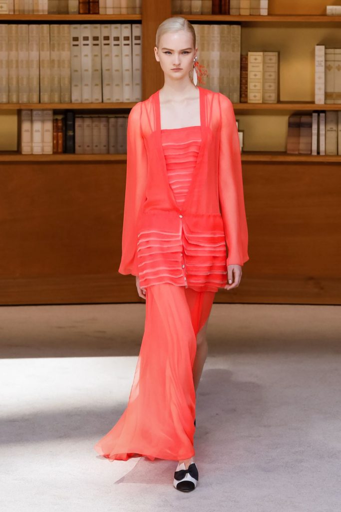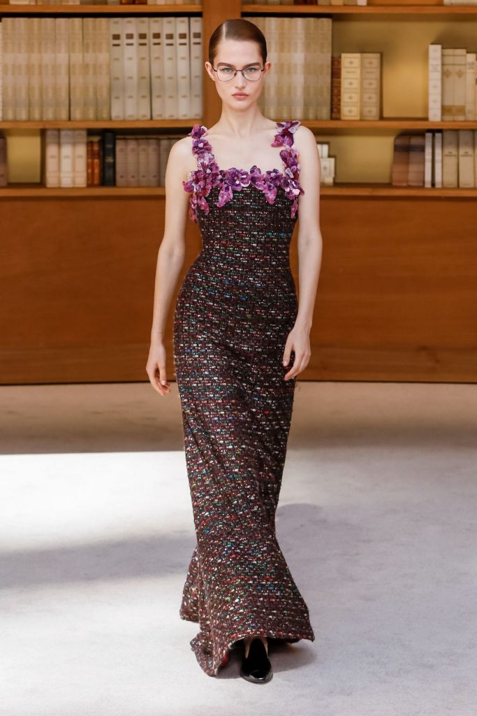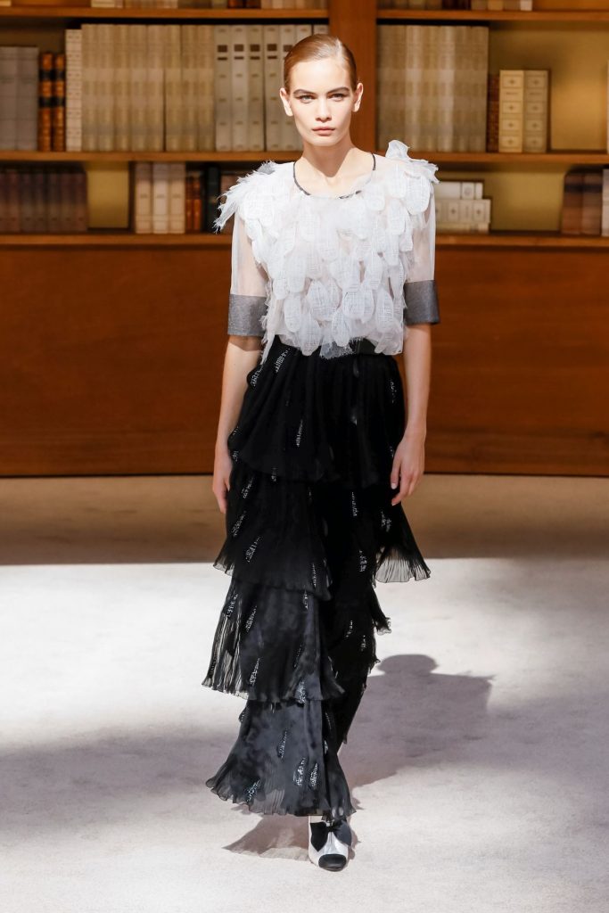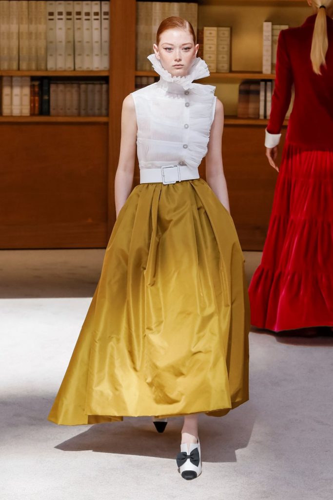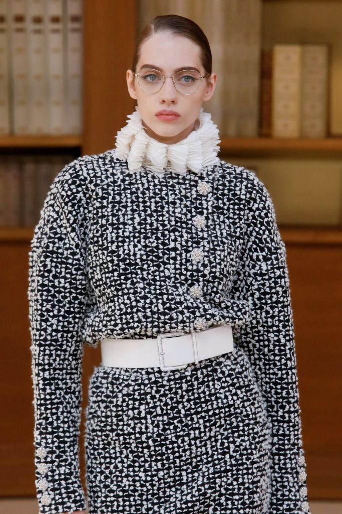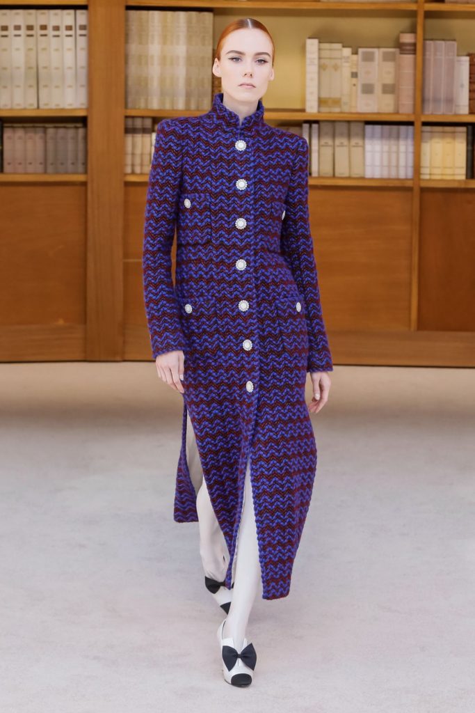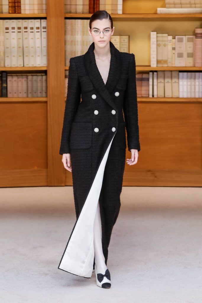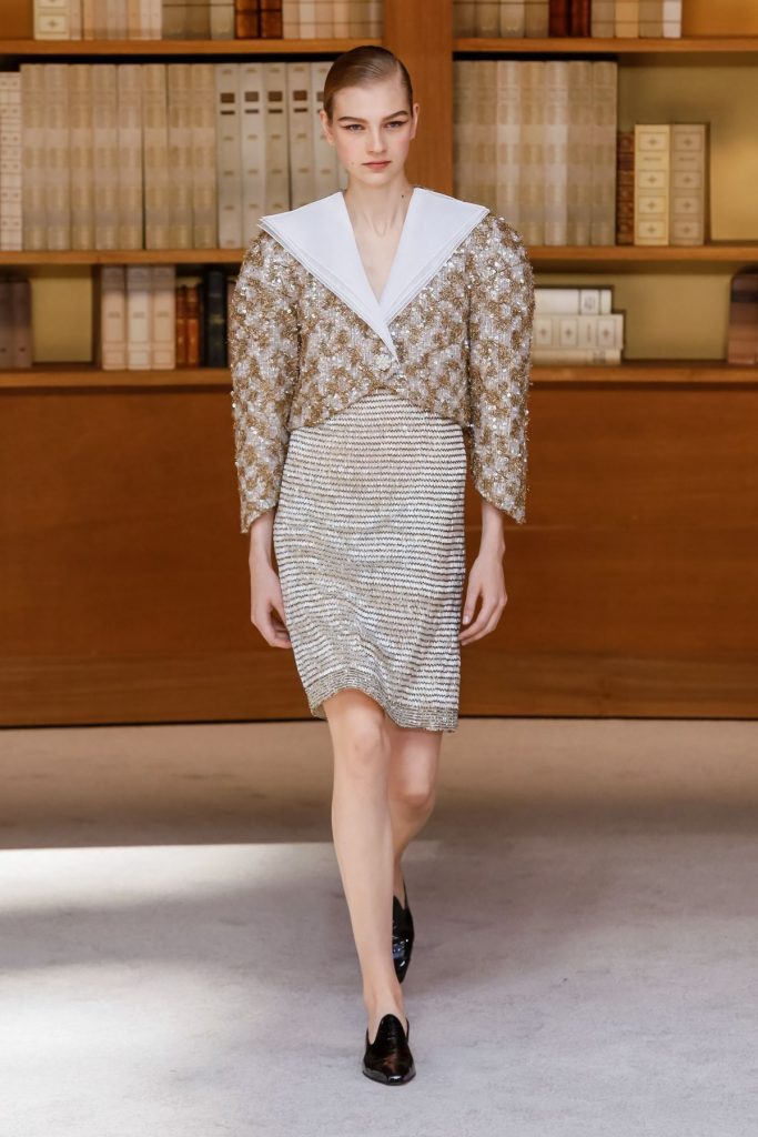 Em carreira solo na Chanel, Virginie Viard, faz sua estreia na Semana de Alta-Costura de Paris para o inverno 2020 apresentando uma alfaiataria cheia de elegância, como sempre, mas com um pouco mais de leveza. Num cenário onde o Grand Palais foi transformado numa biblioteca, os looks da label mostraram mantôs compridos abotoados usados como vestidos, terninhos clássicos com mangas bufantes, pantalonas largas, além de casaquetos de mangas arredondadas.