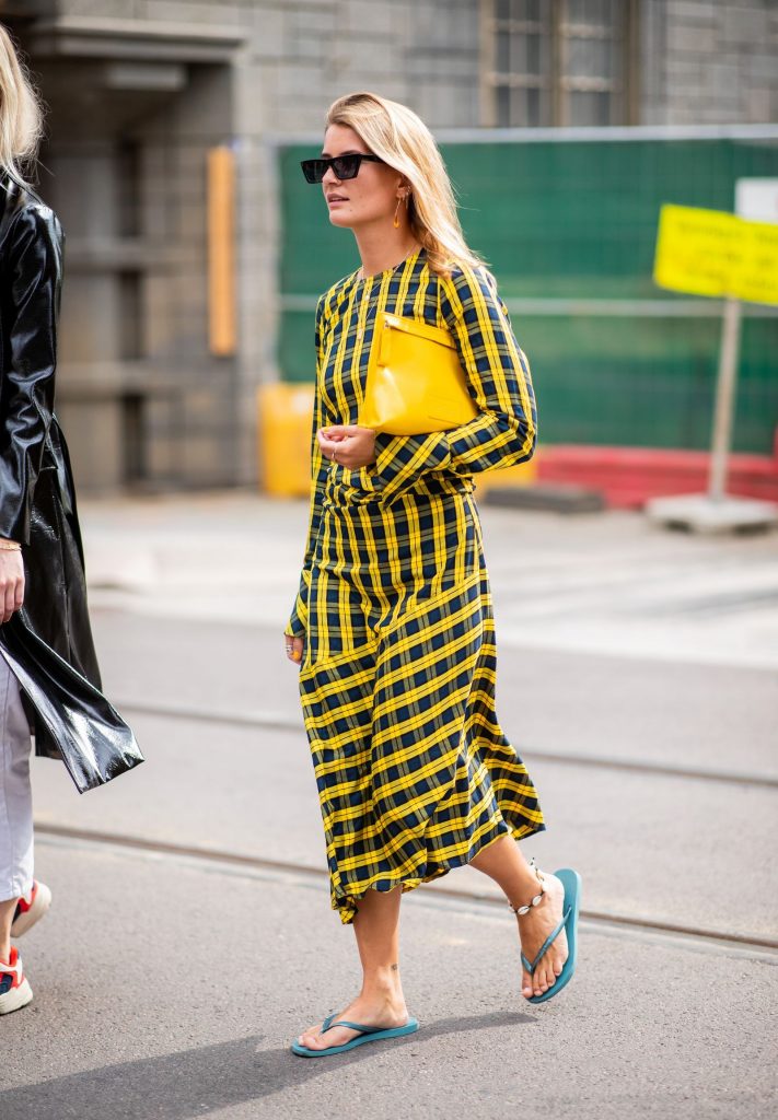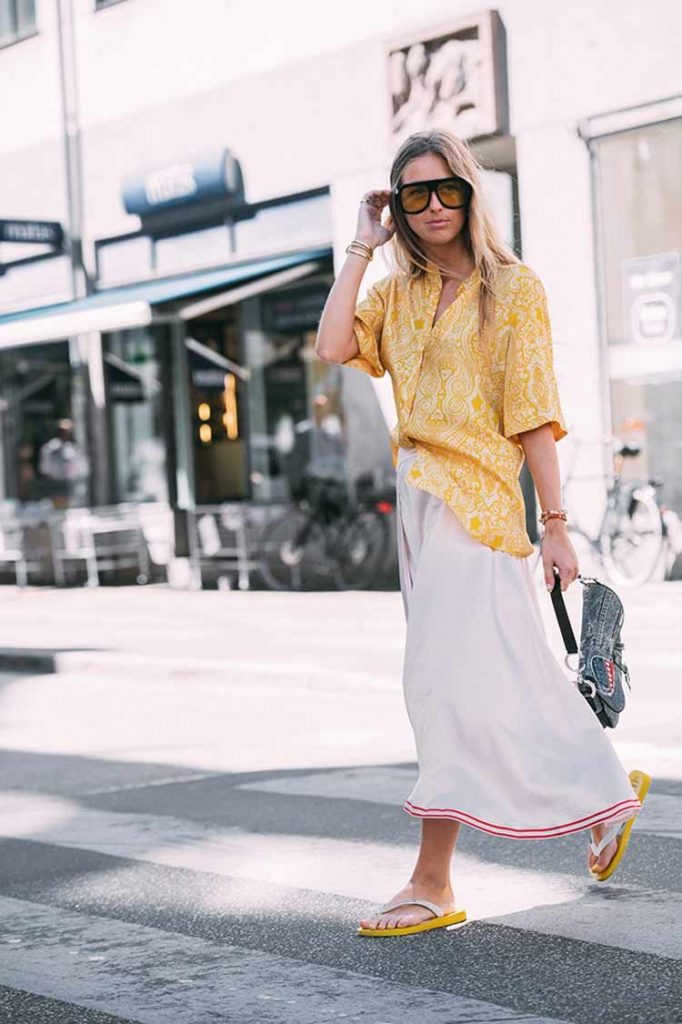 Mais do que nunca, a palavra de ordem hoje na moda é conforto. Entre nesse mood, da despojada composição de chinelos com looks de todos os tipos: saias, vestidos e calças. Ou seja, quanto mais vestida estiver a mulher, mais os chinelos estarão em alta.