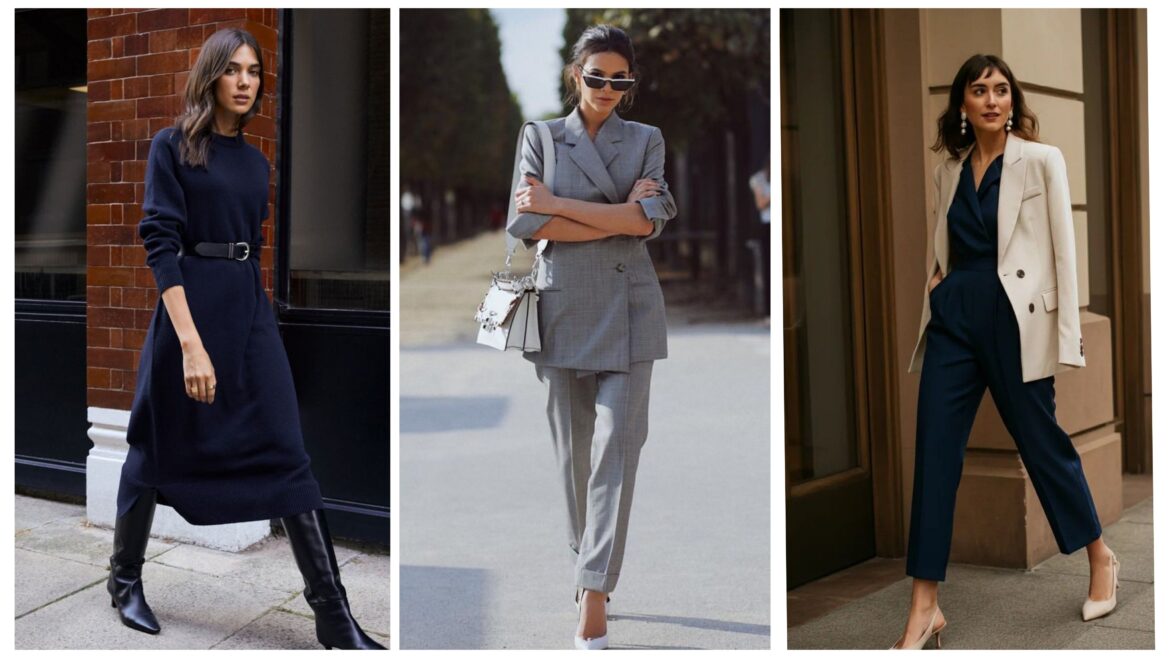 Combinação ideal: Azul-marinho com branco ou com caramelo cria um visual clássico com frescor.