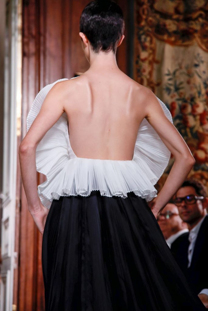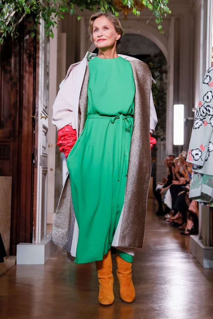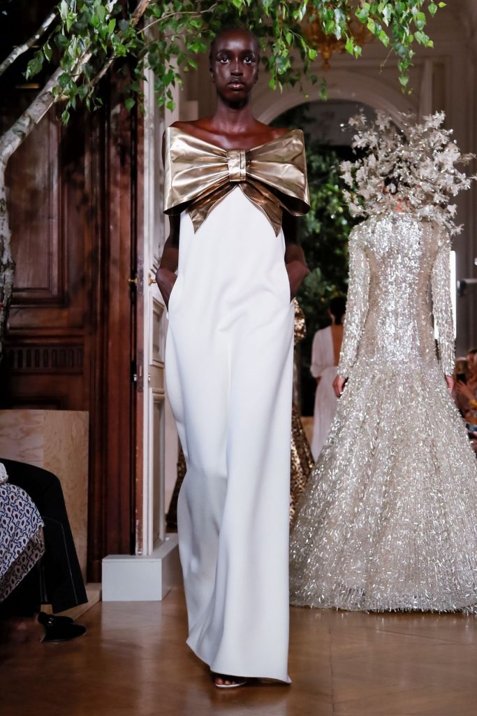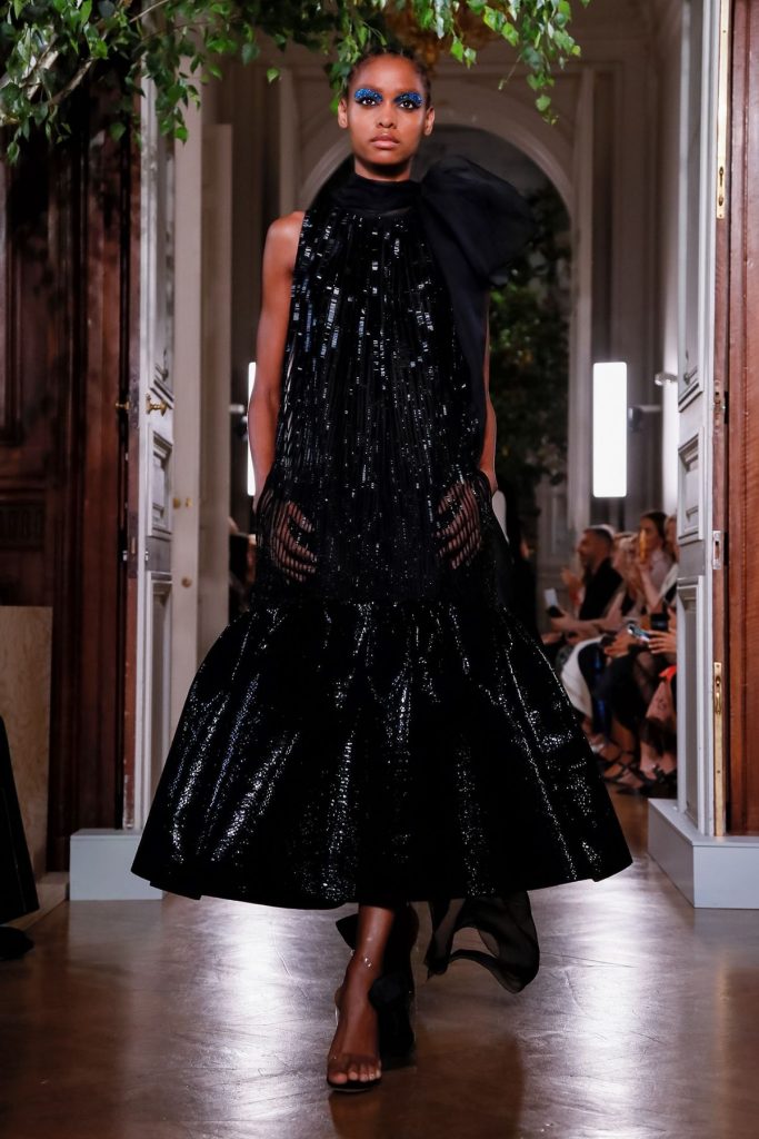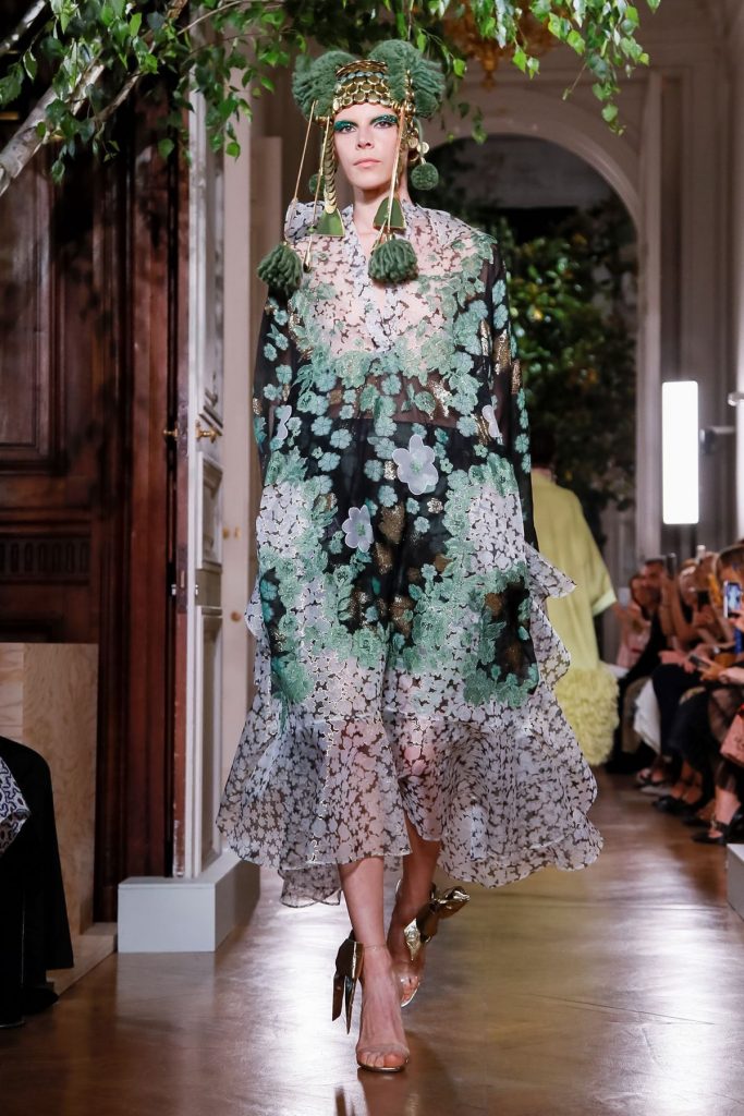 Deixando de lado um tema único, ele mostrou uma paleta de cores vibrantes, que se misturaram com referências e estilos diferentes: desde o minimalismo, passando por imensos decotes nas costas, volumes, mangas de paetês, até o capuz, usado como acessório. Outra marca de Piccioli foi o floral, tanto aplicado como estampado. Franjas de plumas, laços, mangas de paetês e toucas chullu também figuraram na passarela da Valentino, que exibiu um casting considerado plural, com Lauren Hutton na passarela, aos 75 anos de idade, homenageando assim o poder da individualidade e da diversidade em sua exibição.