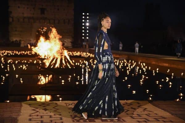 “Maria Grazia Chiuri sempre teve seu coração determinado em estabelecer intercâmbios criativos com culturas africanas”, explicou Dior em um comunicado à imprensa. “Com esta coleção, ela procurou dialogar com a paisagem real e imaginada do Marrocos, na encruzilhada do Mediterrâneo, Europa e África, como um destino de sonho para artistas, poetas, escritores e eternos aventureiros”.