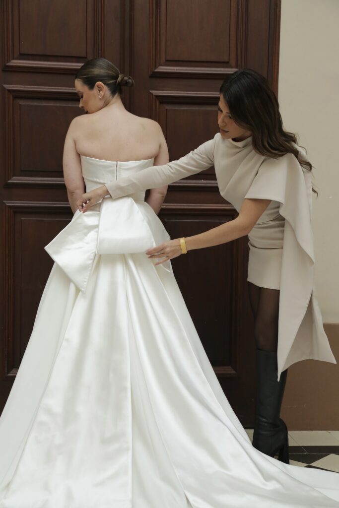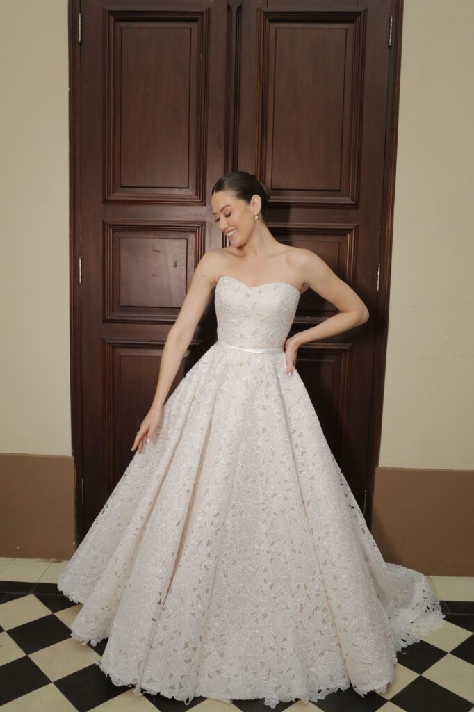 Modelos de saias volumosas dividiram elegantemente o protagonismo com vestidos que abraçavam a forma do corpo, tecendo uma narrativa visual que celebrou a pluralidade de formas. Rendas delicadas, decotes ombro a ombro que revelam a nuca com sutileza, grandes laços que adornam com graça e outros detalhes que foram extraídos da essência singular de cada mulher retratada, reafirmando o caráter sublime da moda feita sob medida.