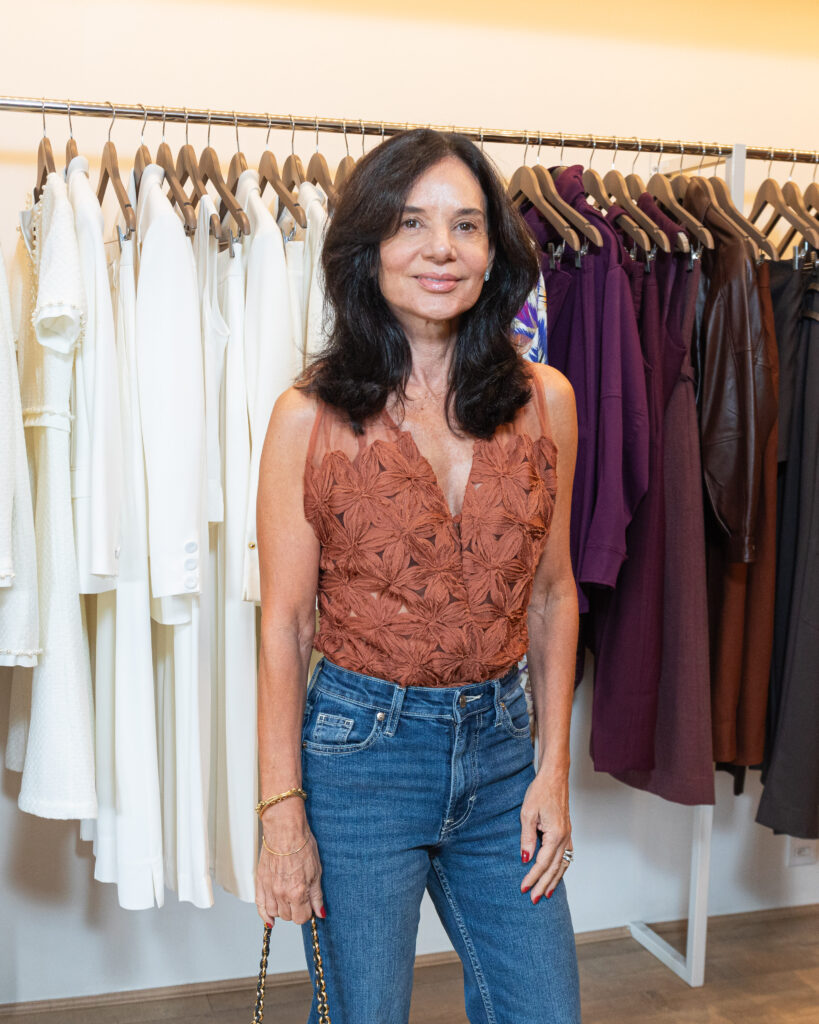 Além disso, a dinâmica promoveu uma forte interação entre as anfitriãs e as participantes. Nathália, Kátia Coitinho e Valkiria Schotkis reforçando o clima leve e descontraído do encontro. Ao longo da tarde, a estilista circulou entre o público, conversou individualmente e participou da recepção, acompanhando de perto a experiência do grupo.