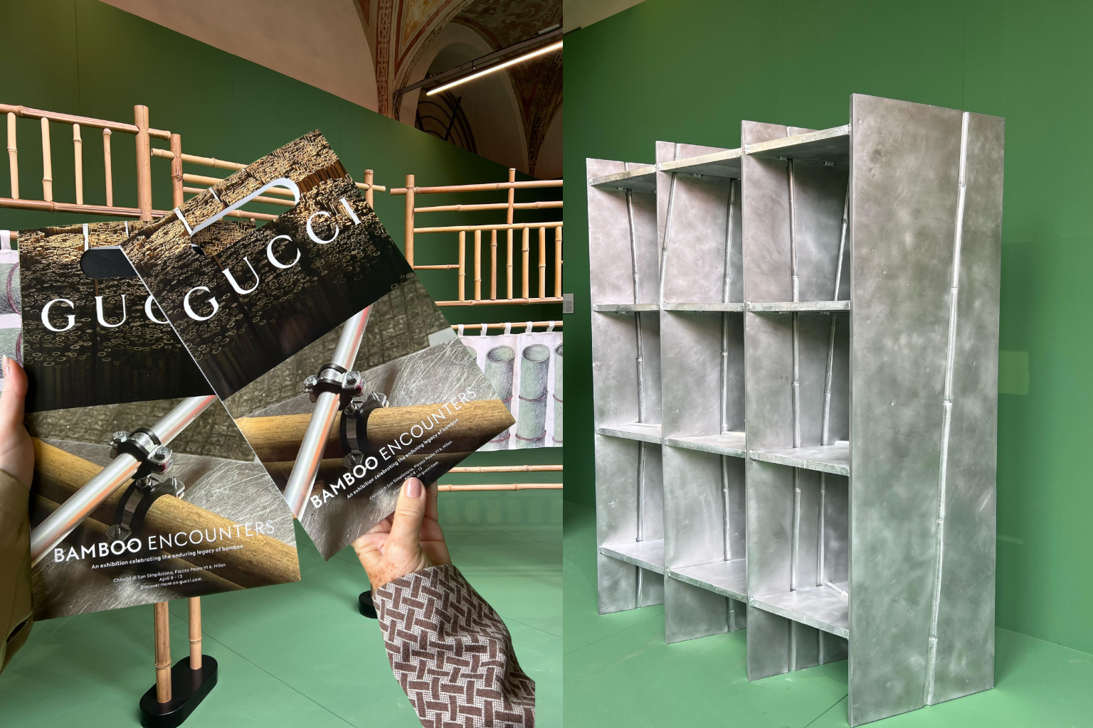 A exposição Gucci Bamboo Encounters reúne trabalhos de sete artistas e designers internacionais que exploram o bambu como matéria-prima de múltiplas possibilidades. Entre os destaques estão a fonte de bronze de Anton Alvarez, cestas de vidro de Dima Srouji, pipas do coletivo Kite Club, móveis assinados por Sisan Lee e Laurids Gallée, uma escultura de neon do The Back Studio e os têxteis vibrantes de Nathalie Du Pasquier.