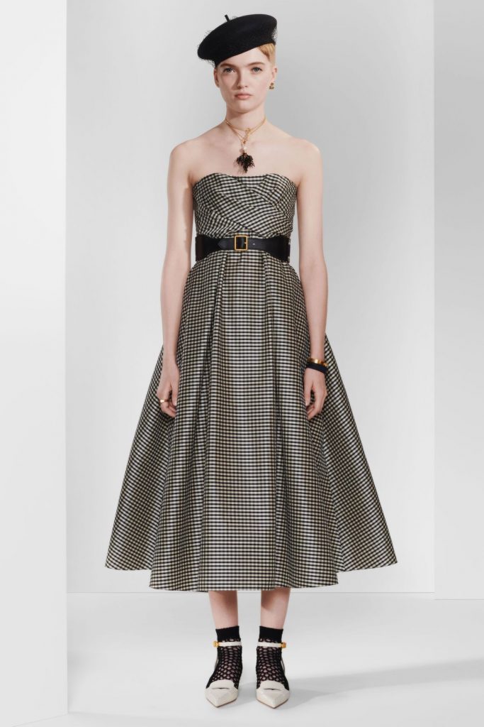 Com uma coleção despojada, a diretora criativa da marca, Maria Grazia Chiuri, apresentou peças de formas retas, esbanjando na padronagem xadrez e nas cores mais escuras. Minissaias com botas, roupões longos abertos sobre calças, conjuntos compostos com gravata e vestidos tomara que caia, praticamente sem detalhes, estiveram em evidência.