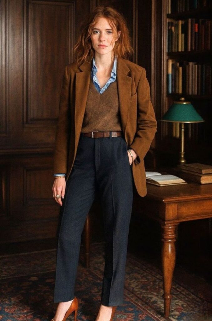 - Tendências Fortes: Espera-se a evolução do “Librarian Chic” (o estilo bibliotecária sofisticada) e o retorno de uma alfaiataria mais estruturada com ombros marcados, contrastando com tecidos fluidos e transparências.