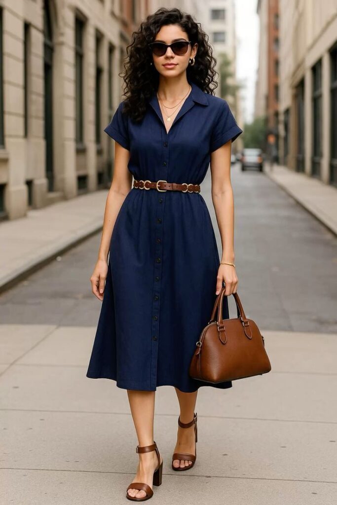Blazers oversized, calças de alfaiataria com cortes retos, camisas de tecidos leves e vestidos midi são clássicos que funcionam muito bem.
