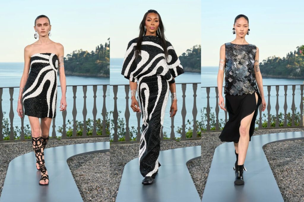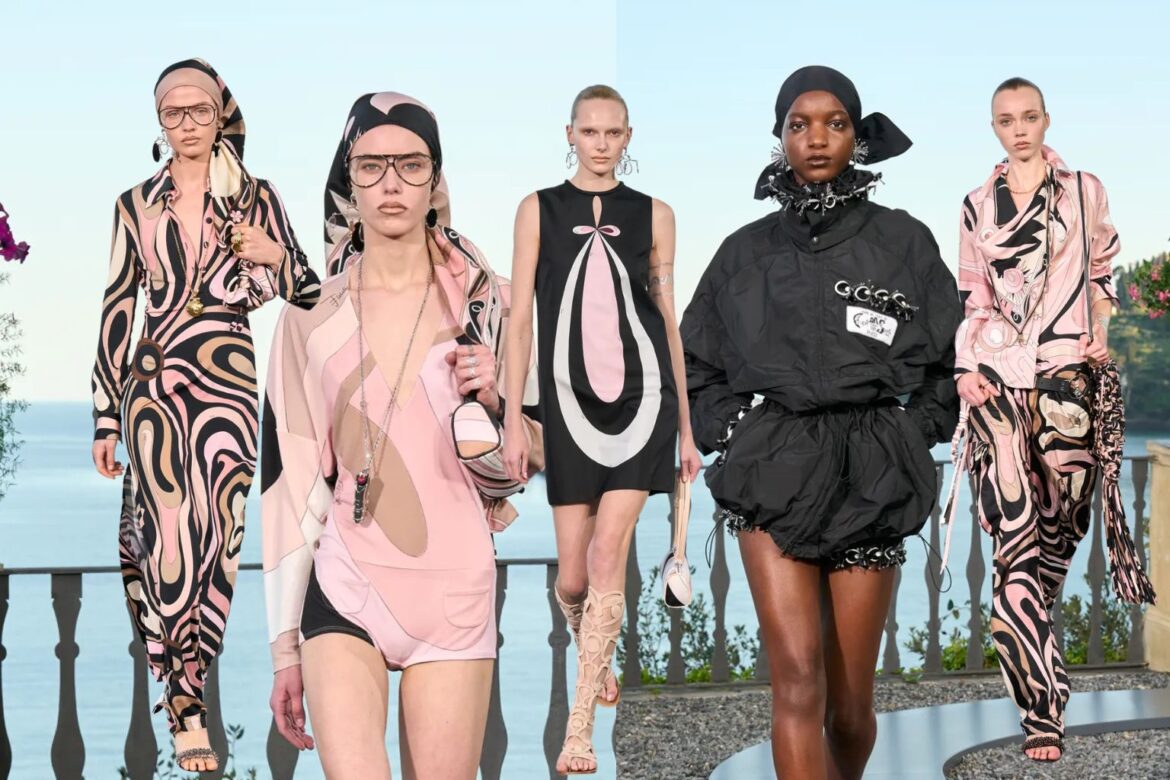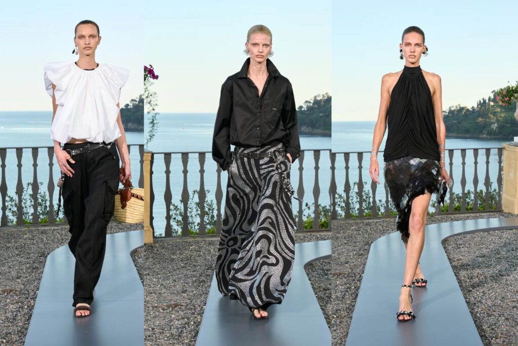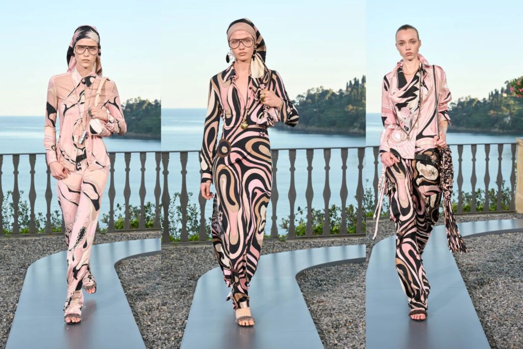 A coleção Pucci Resort 2025 foi apresentada por Camille Miceli com vista para o mar de Portofino, em um desfile que celebrou a tradição gráfica da maison com frescor contemporâneo e espírito libertário. O cenário escolhido, a histórica abadia La Cervara, ajudou a construir a atmosfera perfeita para a proposta solar e leve da diretora criativa.