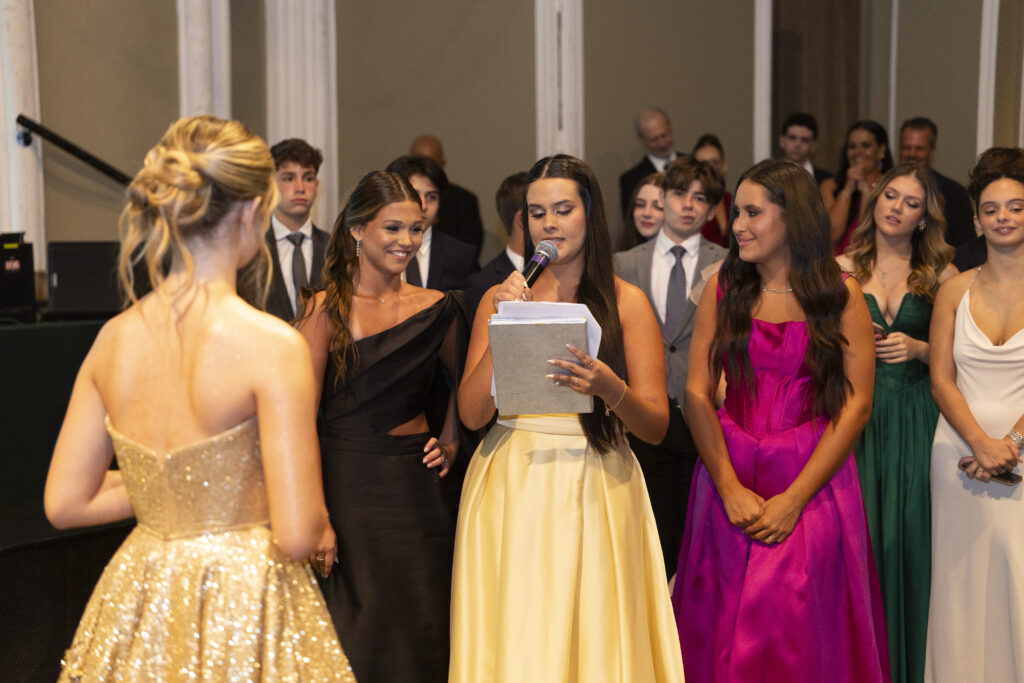 As homenagens das amigas e os discursos dos pais ressaltaram memórias compartilhadas e marcaram um dos momentos mais especiais. Em sintonia com as falas emocionadas, a tradicional valsa com o pai e a apresentação com o grupo de amigos evidenciaram a relação de Rafaela com a dança.