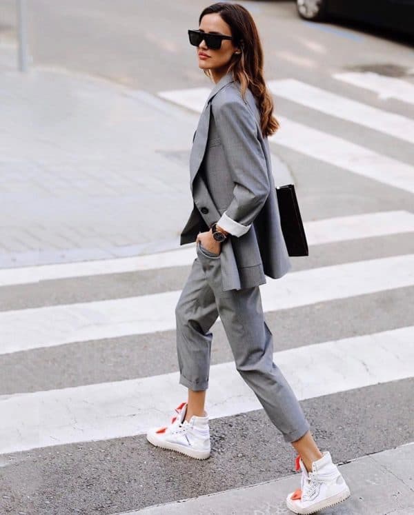 Para dar um toque de contemporaneidade à produção, basta combinar o terninho com tênis. O resultado é um mood urbano ultramoderno.