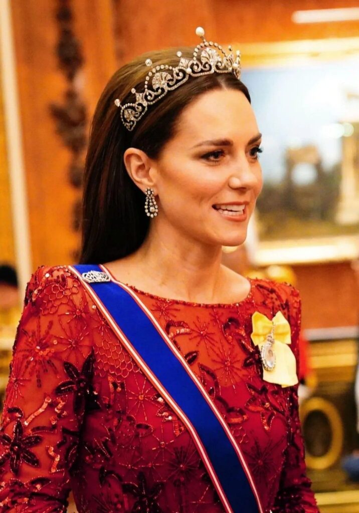 Um presente de casamento do Conde de Strathmore para sua filha em 1923, esta tiara apresenta um visual romântico e vintage. Curiosamente, a peça ficou guardada nos cofres reais por quase noventa anos. No entanto, ela voltou a encantar o público recentemente, quando foi usada em um banquete de Estado, reafirmando o valor das joias históricas na modernidade.